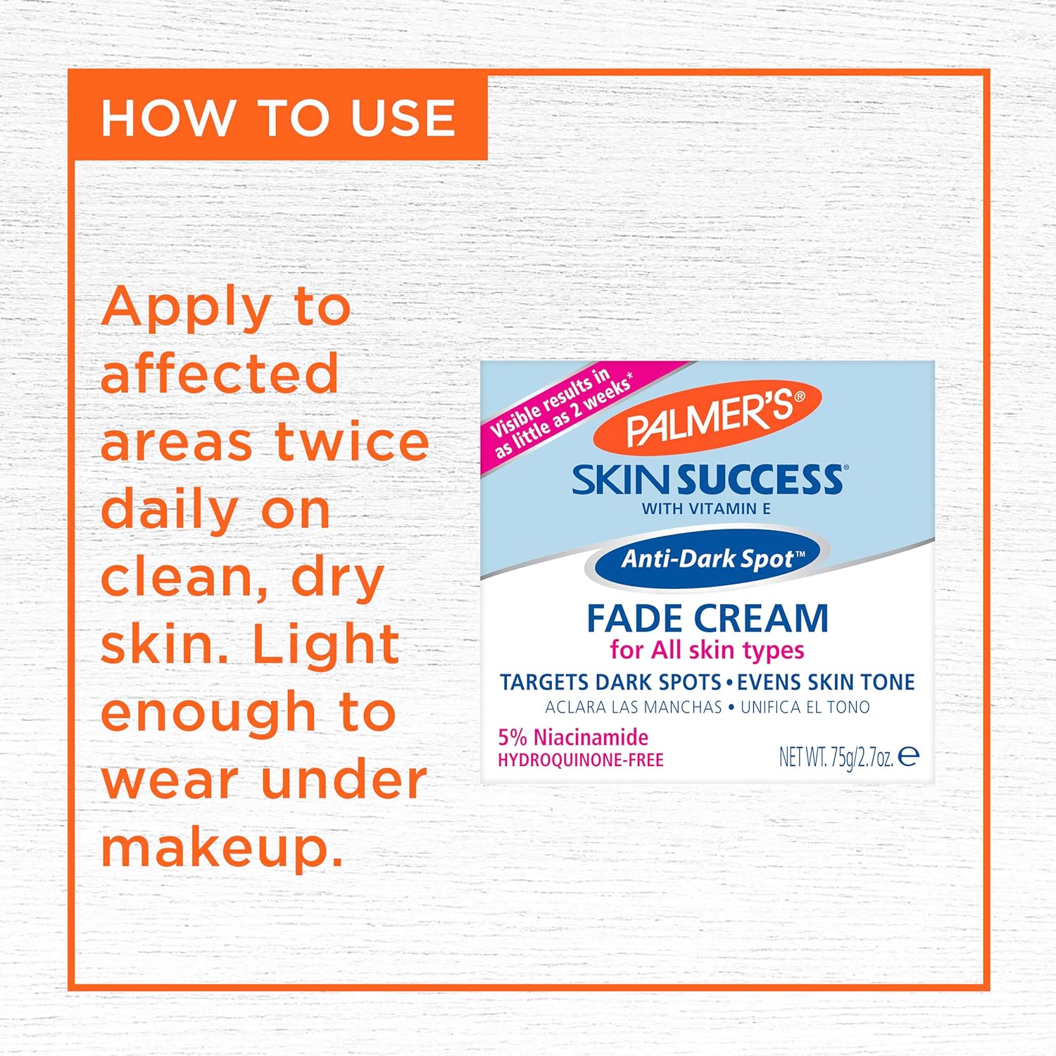 Retrouvez la confiance d’une peau sans défaut. Commandez votre Palmer’s Skin Success Fade Cream sur Blue Bazar et profitez d’une livraison rapide partout au Sénégal.