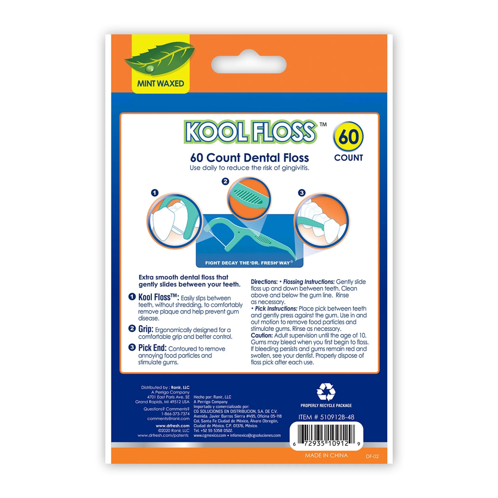 Facilitez votre routine d’hygiène buccale avec les Picks de Fil Dentaire Ciré Dr. Fresh Kool Floss (Menthe, 60 Unités), disponibles chez Blue Bazar, votre fournisseur de produits de soins personnels américains à Dakar !